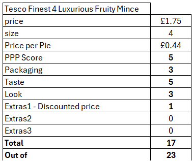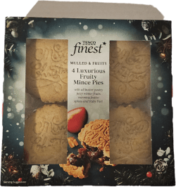 I asked myself, what makes it a luxurious fruity mince pie and found myself reading the back. This is why, they have a “rich damson flavour plum and glacé cherry mincemeat, infused with ruby port, french brandy and spices”.