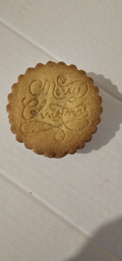 The pastry is a beautiful golden colour, which is ‘all butter’, and each pie wishes me a Merry Christmas.