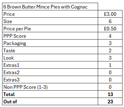 We’ve been to Waitrose! And purchased a number of their festive items. This review is for the Brown butter mince pies with cognac.