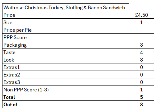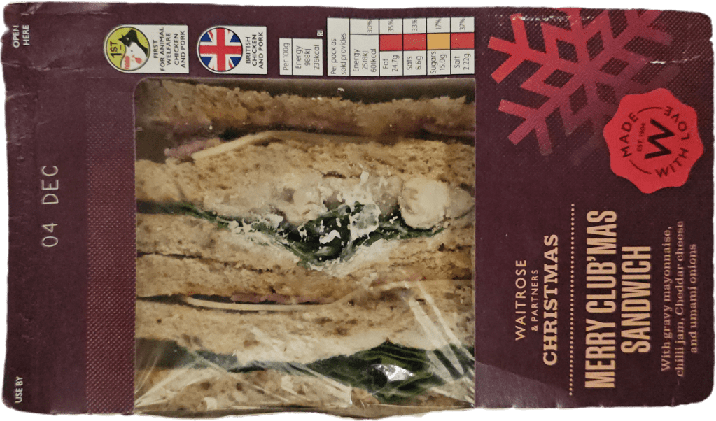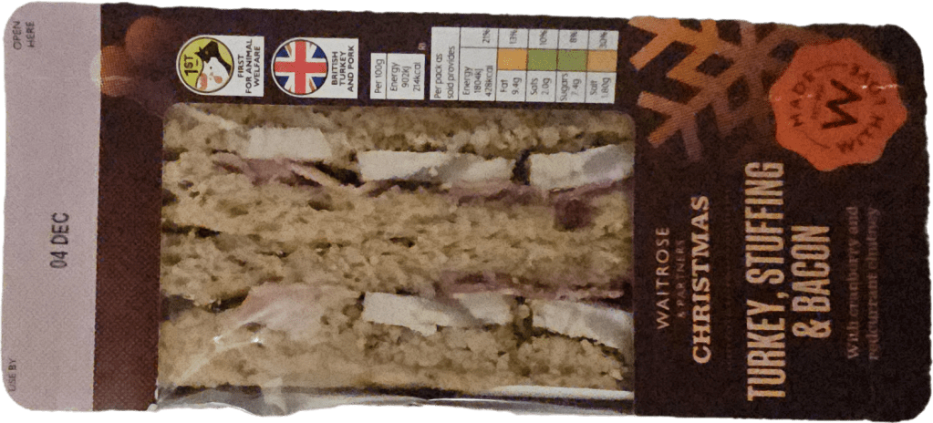 This is my go to festive sandwich, containing turkey, bacon, stuffing and possible one other ingredient. Any more additions and the flavour changes a bit too much.